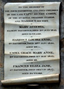 When I saw the above information on the memorial stone in Bath Abbey I was deeply moved by the tragedy of it. There are eleven ‘horrific’ years for Harriet Francis Cosby: